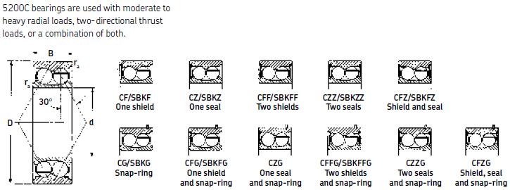 MRC 5215-C雙列球軸承尺寸為:內(nèi)徑:75mm,外徑:130mm,厚度:41.28mm,類型:5200-C,5200-SB輕載系列雙列球軸承,油潤滑參考轉速:4300轉/分鐘,脂潤滑參考轉速:3200轉/分鐘,精度等級:ABEC-1,產(chǎn)地:美國。